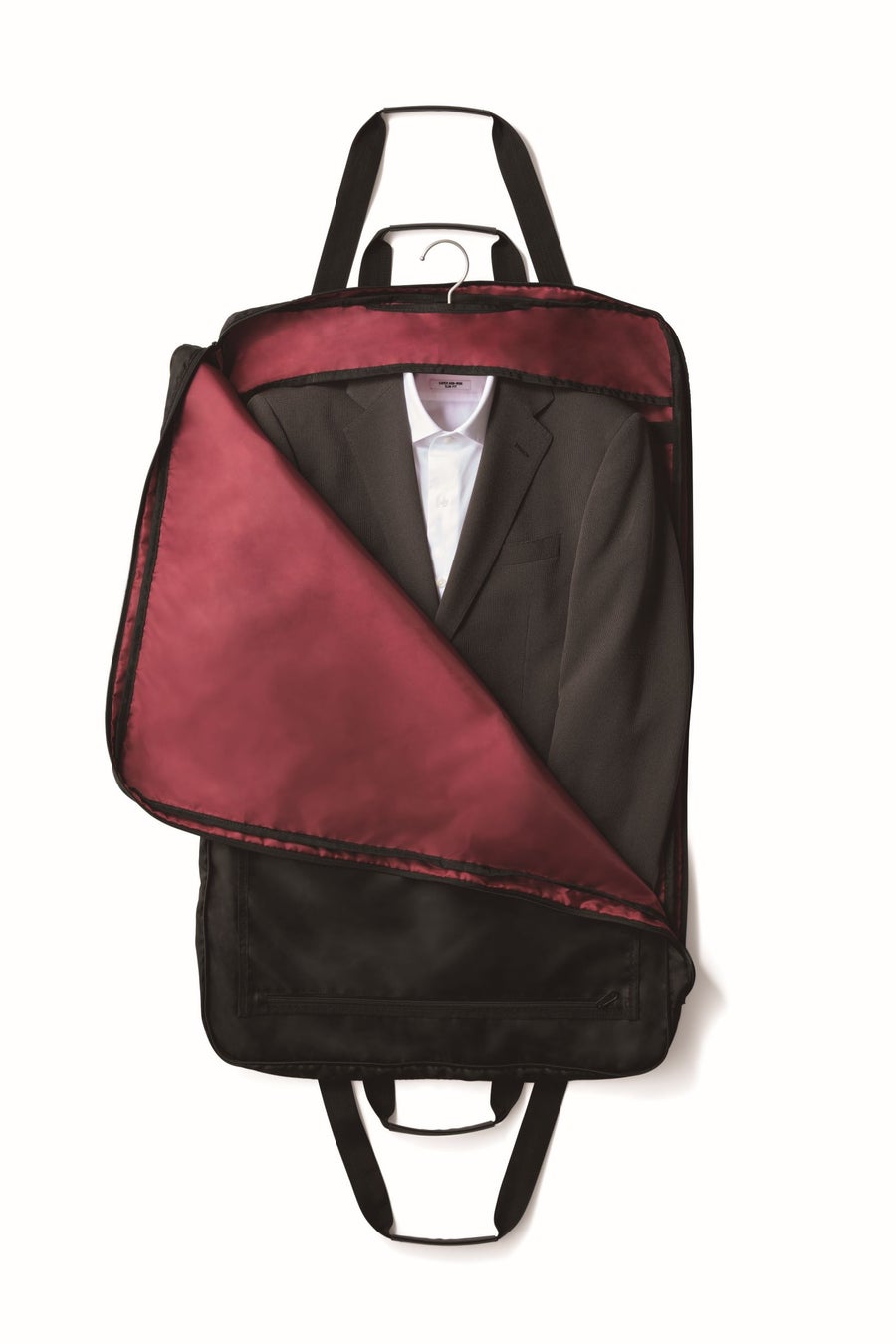 このガーメントケース一つで旅に行ける大変便利なオリジナル商品。ガーメントケースを毎日使用する客室乗務員が「こういう機能があるといい。もっとこういう形なら便利。」を全て詰め込んだこだわりの商品で、機能的で痒い所に手が届くガーメントケースです。ユニセックスで使用でき、ガーメントケースを2つ折りの状態でバッグのように使用する場合にも、開いて使用する場合にもどちらにも対応できるよう、ファスナーを両方から開閉できるよう装着し利便性をアップしています。客室乗務員の間でも評判となっている商品です。