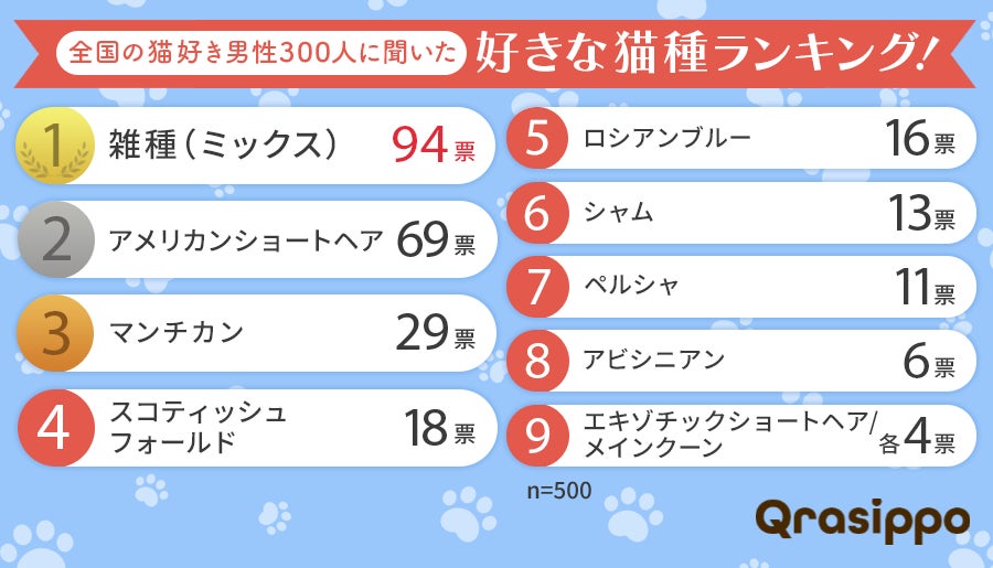 【2024年最新版:全国の猫好き男性300人に聞いた】好きな猫種ランキング!1位はあの猫種