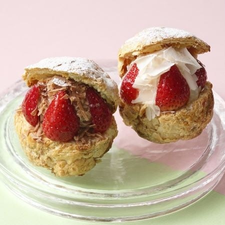 サクっと焼いたパイシューに、クリームと苺がたっぷり。ぜひ食べ比べを。
