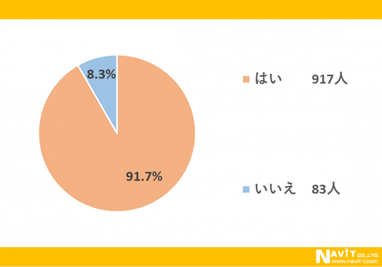 お花見をしたことがあるかどうかについては、「はい」が91,7%、「いいえ」が8.3%という結果になり、9割以上の人がお花見をしたことがあると分かりました。