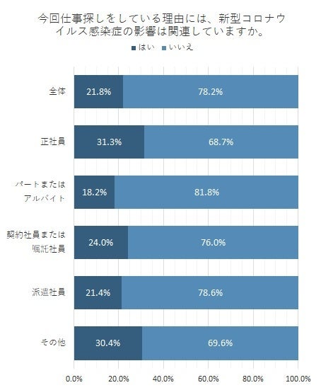 新型コロナウイルス感染症の影響で仕事を探している人は21.8%
