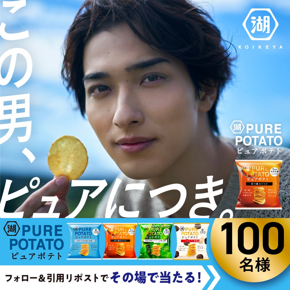湖池屋 コイケヤ【公式】(@koikeya_cp)をフォローしていただいた上で、【#ピュアポテト】をつけて、対象のキャンペーン投稿を引用リポストしてください。