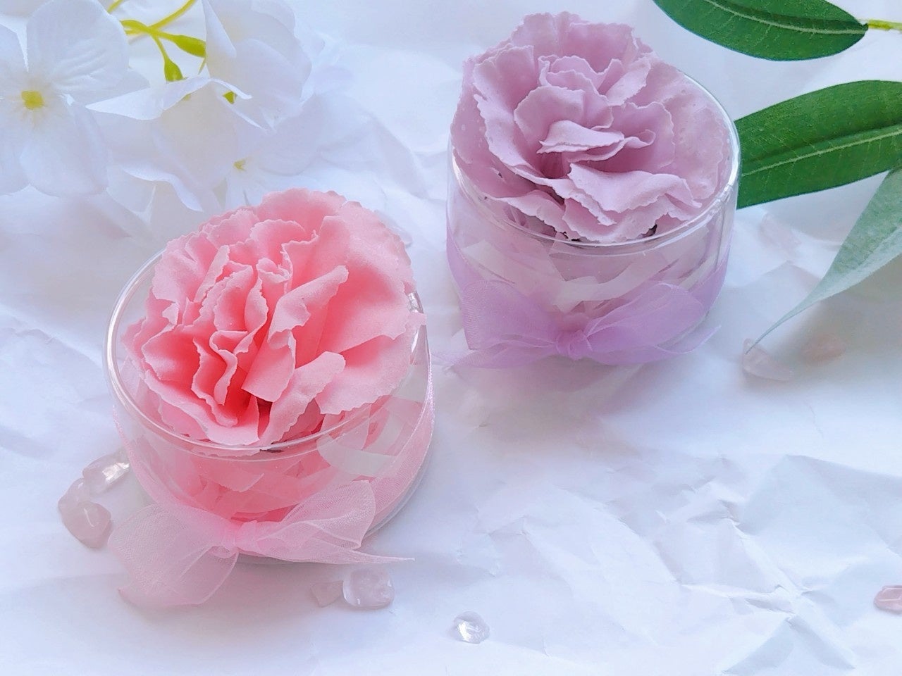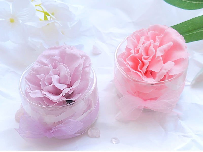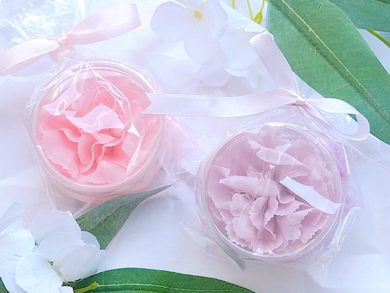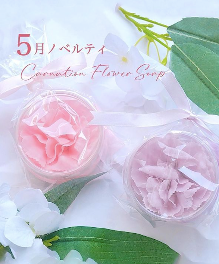当月お誕生日の方限定でノベルティをプレゼントすることとなりました。華やかな2種類のカーネションフラワーソープは、パワーストーンと合わせてプレゼントするのにもおすすめです。