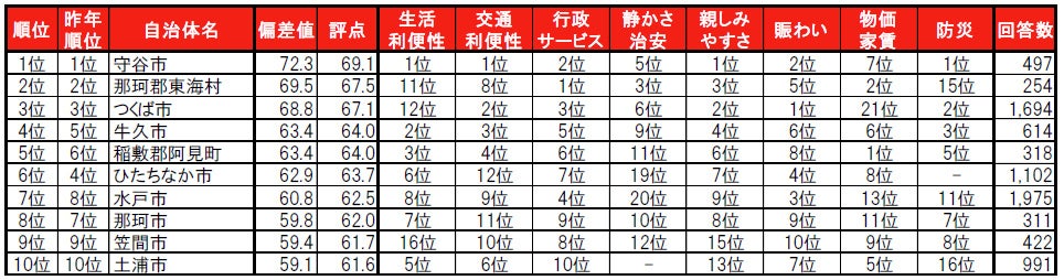 街の住みここちランキング2025<茨城県版>自治体TOP10・因子別順位