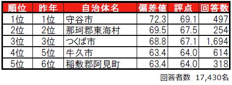 住みここち1位は7年連続で守谷市。稲敷郡阿見町がトップ5にランクイン。