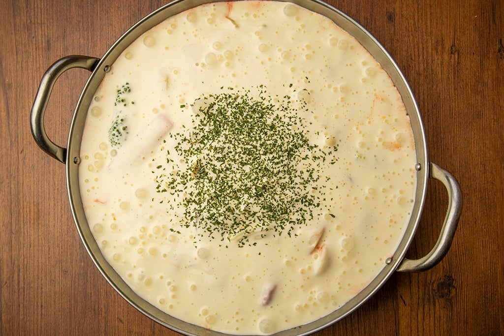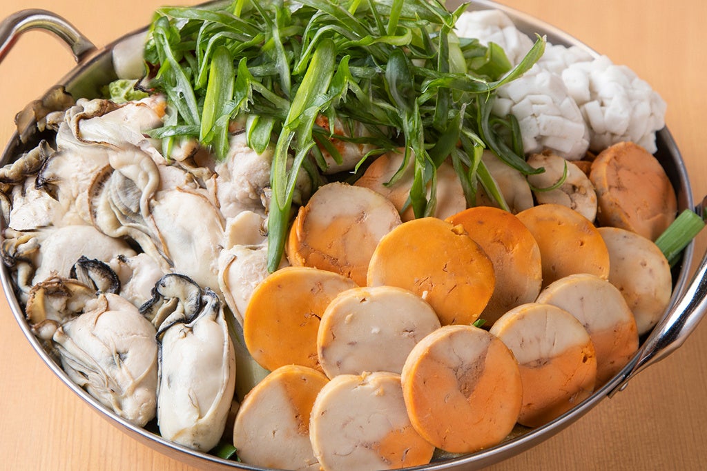 ここ数年、鍋が恋しくなるこの季節。不思議と検索数が急上昇するワードが❝痛風鍋❞。それゆえか「九州黒太鼓 池袋」でも人気の1,2を争ってきたのがこちら。❝海のミルク❞と呼ばれるほど栄養たっぷりの牡蠣、濃厚な味わいが魅力の❝海のフォアグラ❞あん肝、ぷちっとした食感の皮からとろりとクリーミーな身が溢れ出す白子が三位一体となり、罪悪感など忘れるほど極上の海鮮鍋に仕上がっています。コク深い味噌、スタンダードな醤油、あっさり旨塩の3種から、お好みのスープでお召し上がりください。