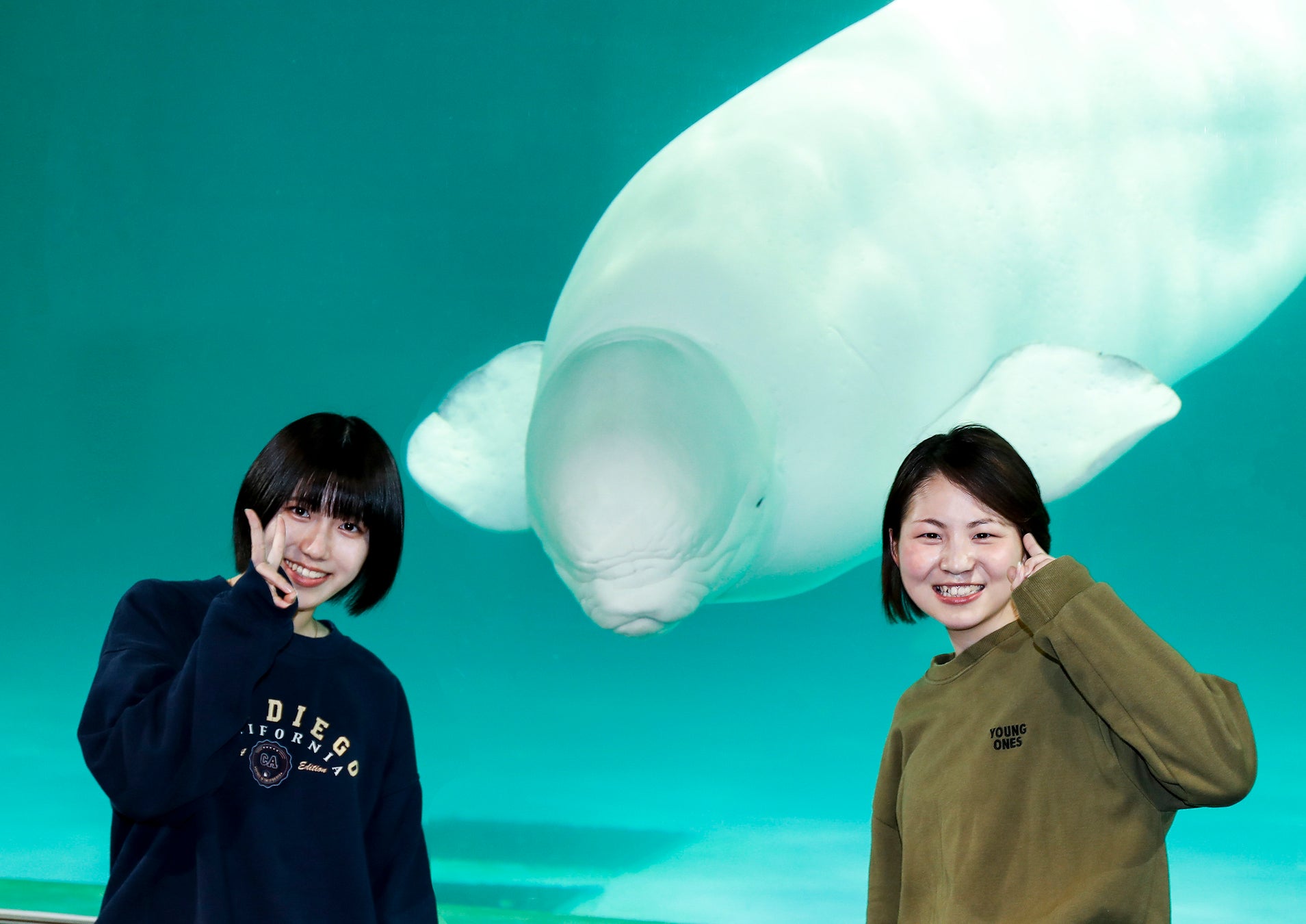 ②ベルーガと記念写真