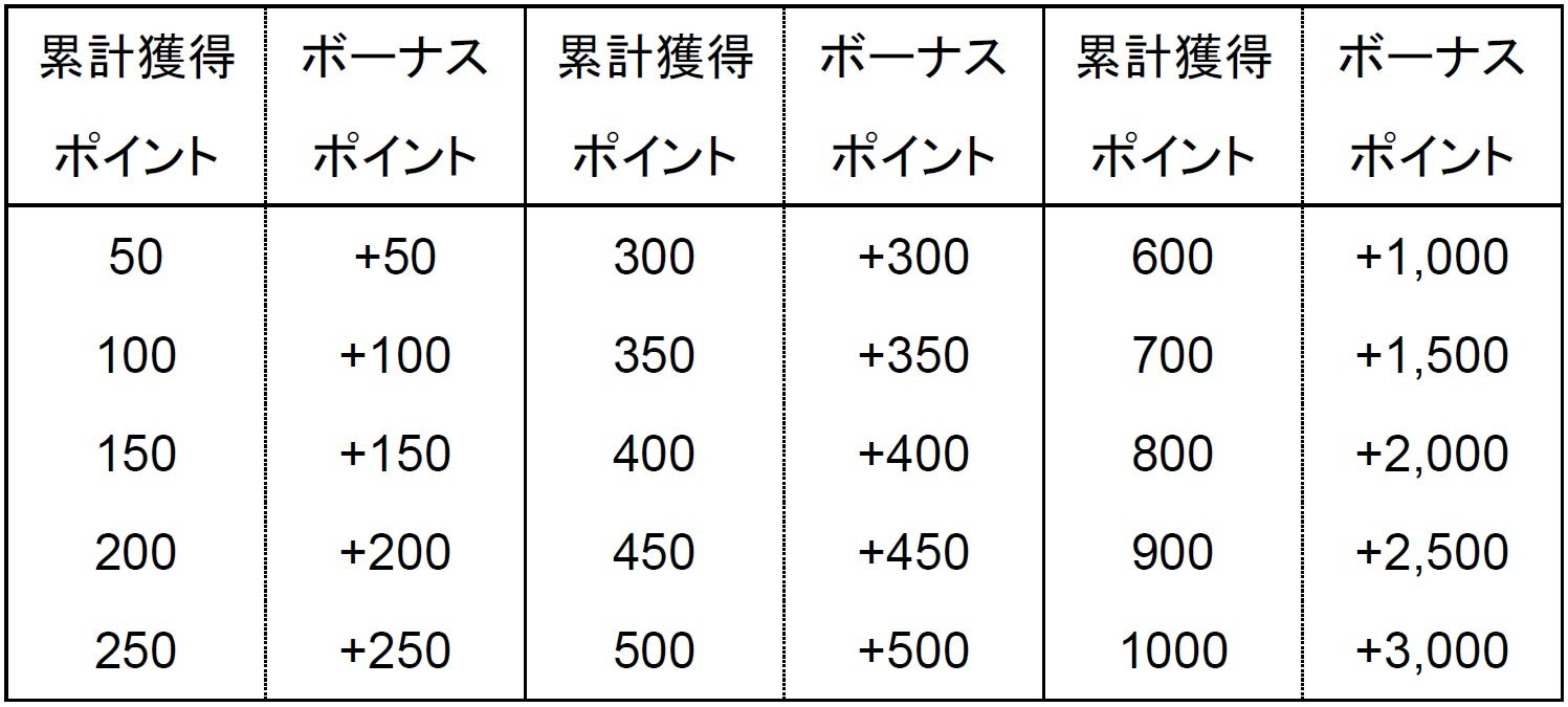 ②期間中の累計獲得ポイントに応じたボーナスポイント進呈