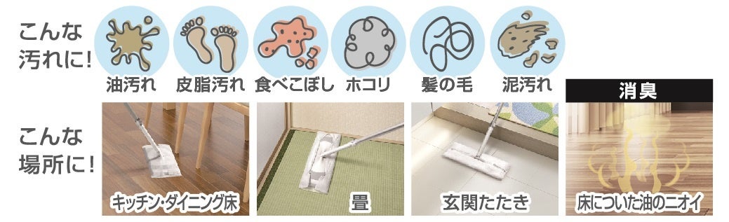 ●フロア用クイックル史上最強のベタベタふきとり力で、床のガンコな油汚れも軽い力でふきとれる