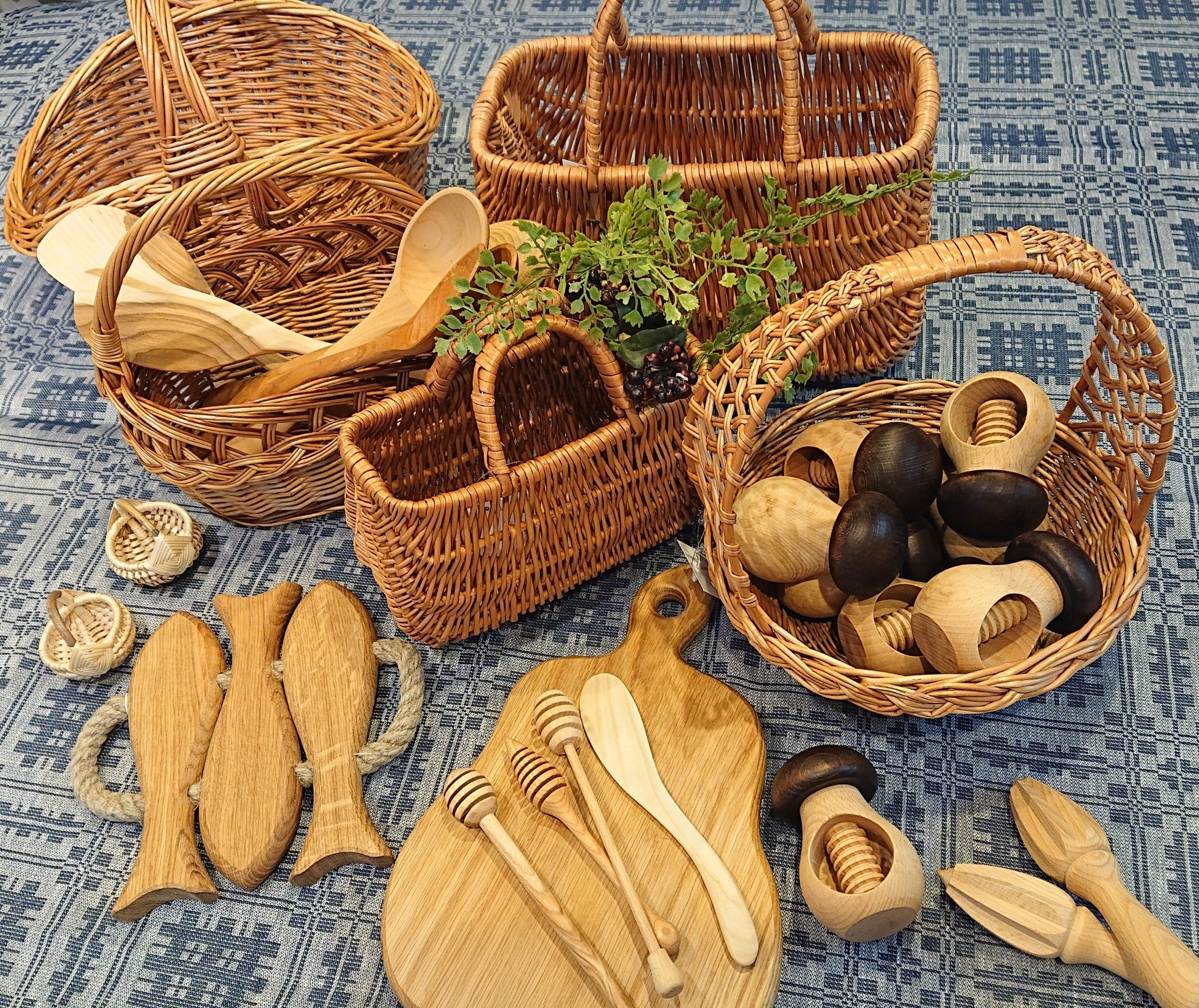 ラトビアのミトンなど手編みのウールアイテムや木製クリスマスオーナメントなど、バルト三国の雑貨が登場。