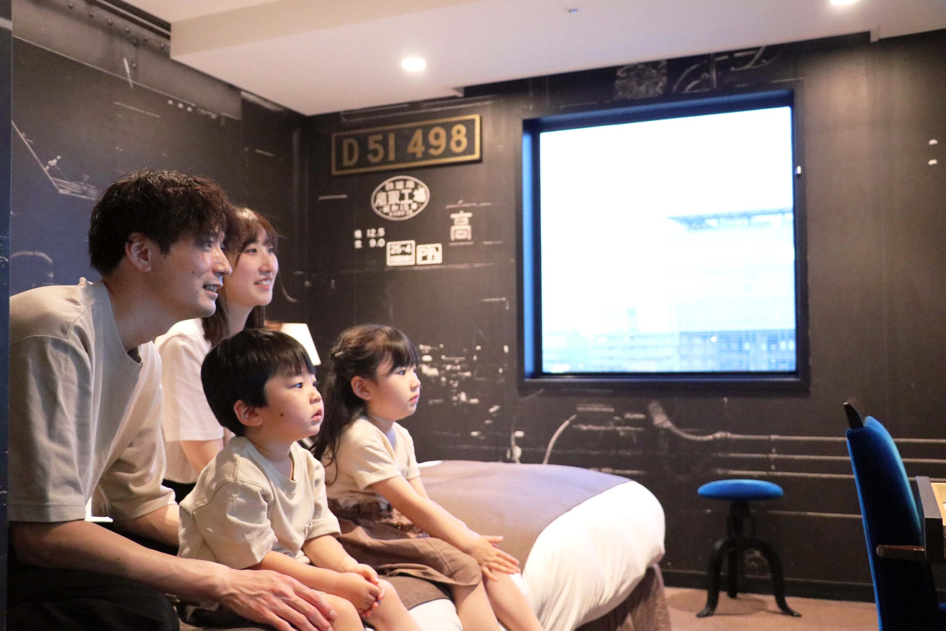 群馬県内を走るSL「D51 498」の大迫力を五感で体感できるコンセプトルーム。D51の原寸車体を模した壁紙や、大画面テレビで見るD51の出発シーンや普段見る事のできない貴重映像や画像を納めたオリジナルコンテンツがお楽しみいただけます。