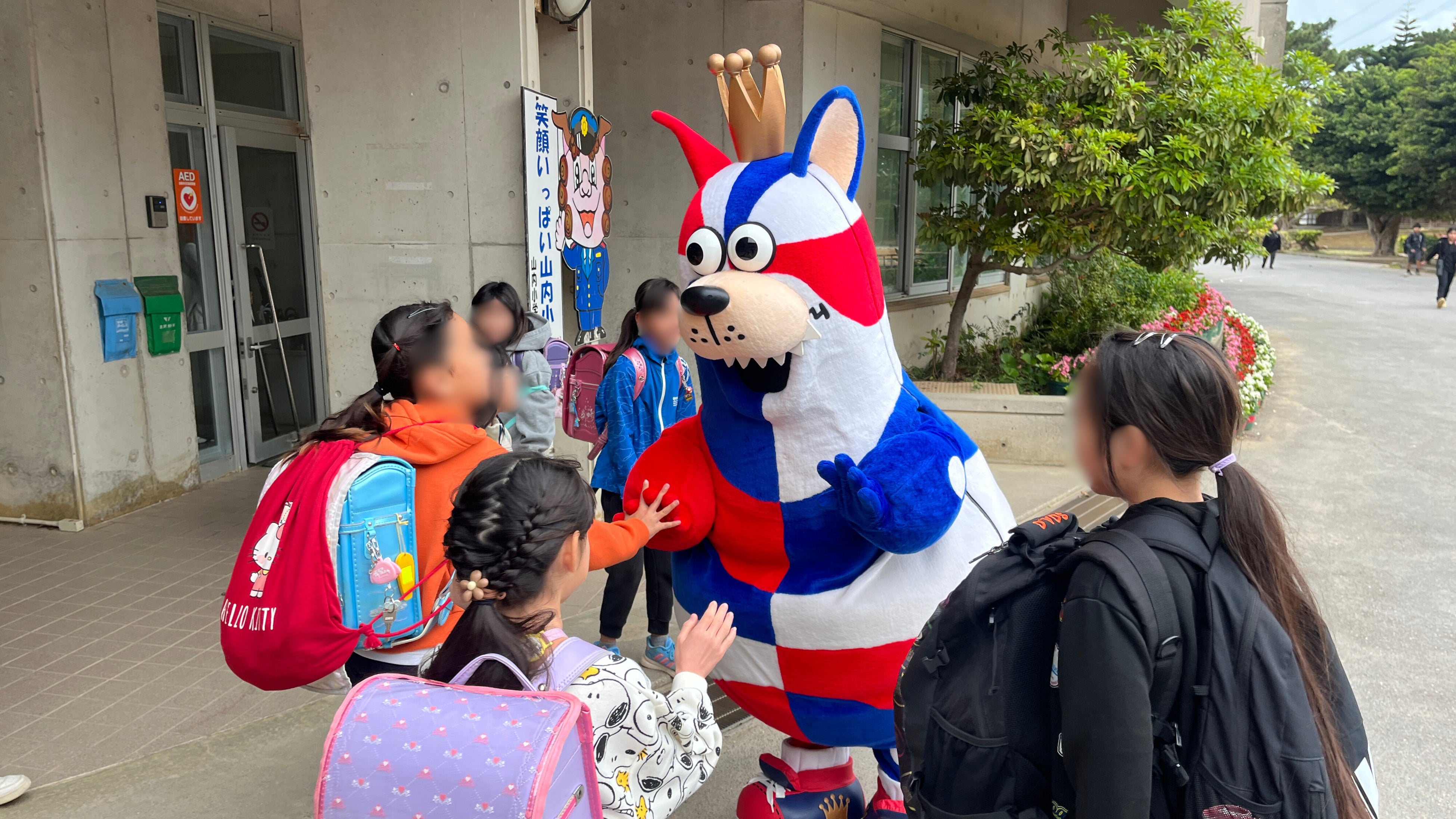 「おおきなわ」の活動の一環として実施している「ゴーディーによる朝のあいさつ運動」において、3月はホームタウン沖縄市の小学校を訪問し、あいさつ運動に参加いたしました。ご協力いただいた各学校の皆さま、ありがとうございました。
