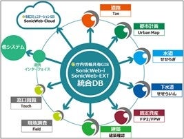 統合DBを中心に、多くの個別GISとの相互連携が可能で、ライトユーザからヘビーユーザまで、必要な機能を要望に応じて柔軟に提供可能です。