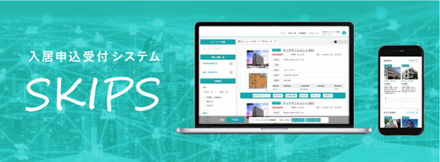 「SKIPS」は空室情報の確認から契約締結まで、一連の業務をスマート化するクラウドサービスです。利用する不動産会社は、営業時間外でも自動で入居申込を受け付ることができ、さらに空室確認から内見予約、鍵の手配、入居申込、保証会社への審査依頼、契約までをシステム上で行うことができます。このたびの連携により、入居申込者は必要情報を入力し、申込を進めることができるため、何度も紙に記入する面倒な手続きから解放されます。