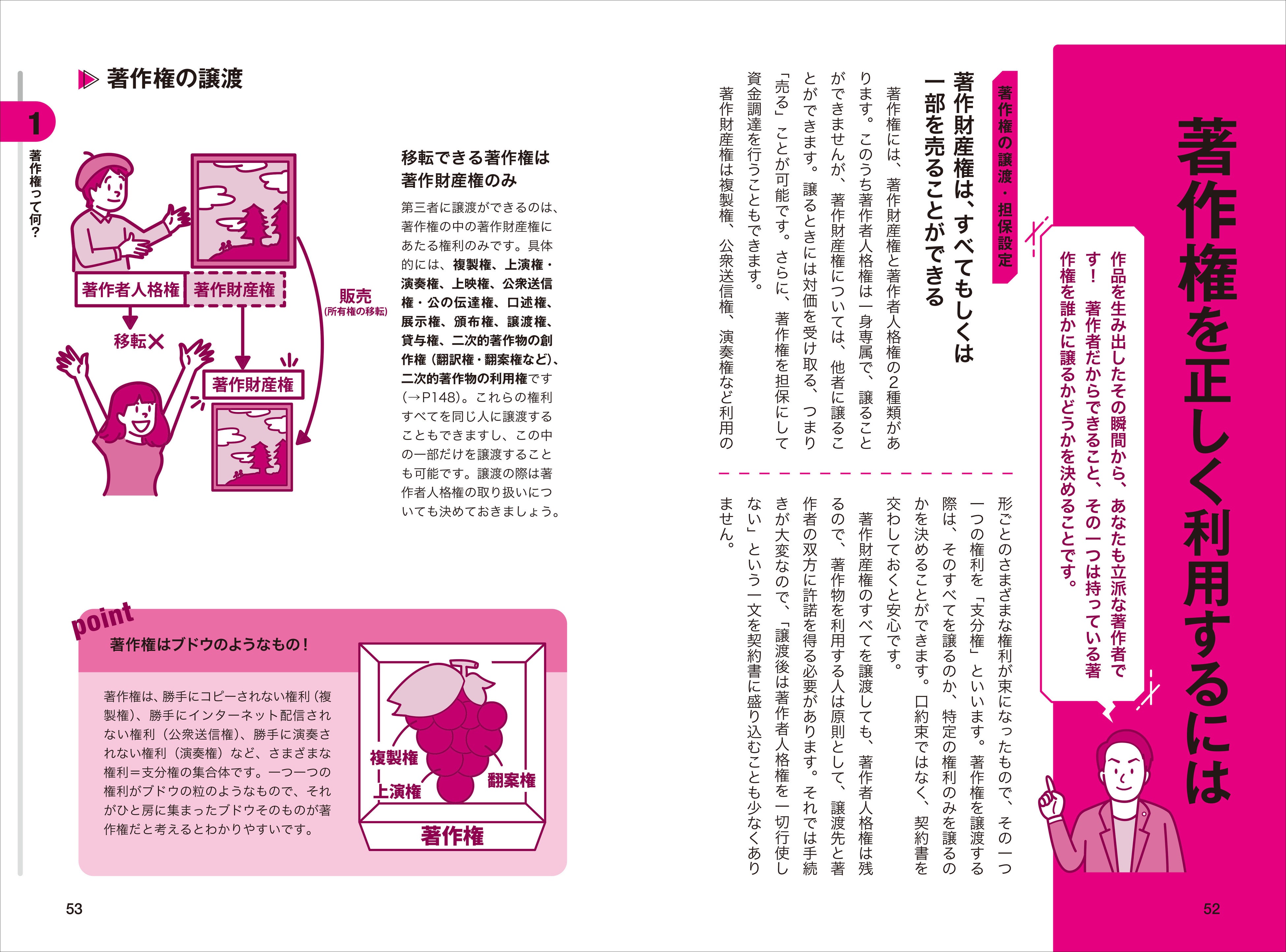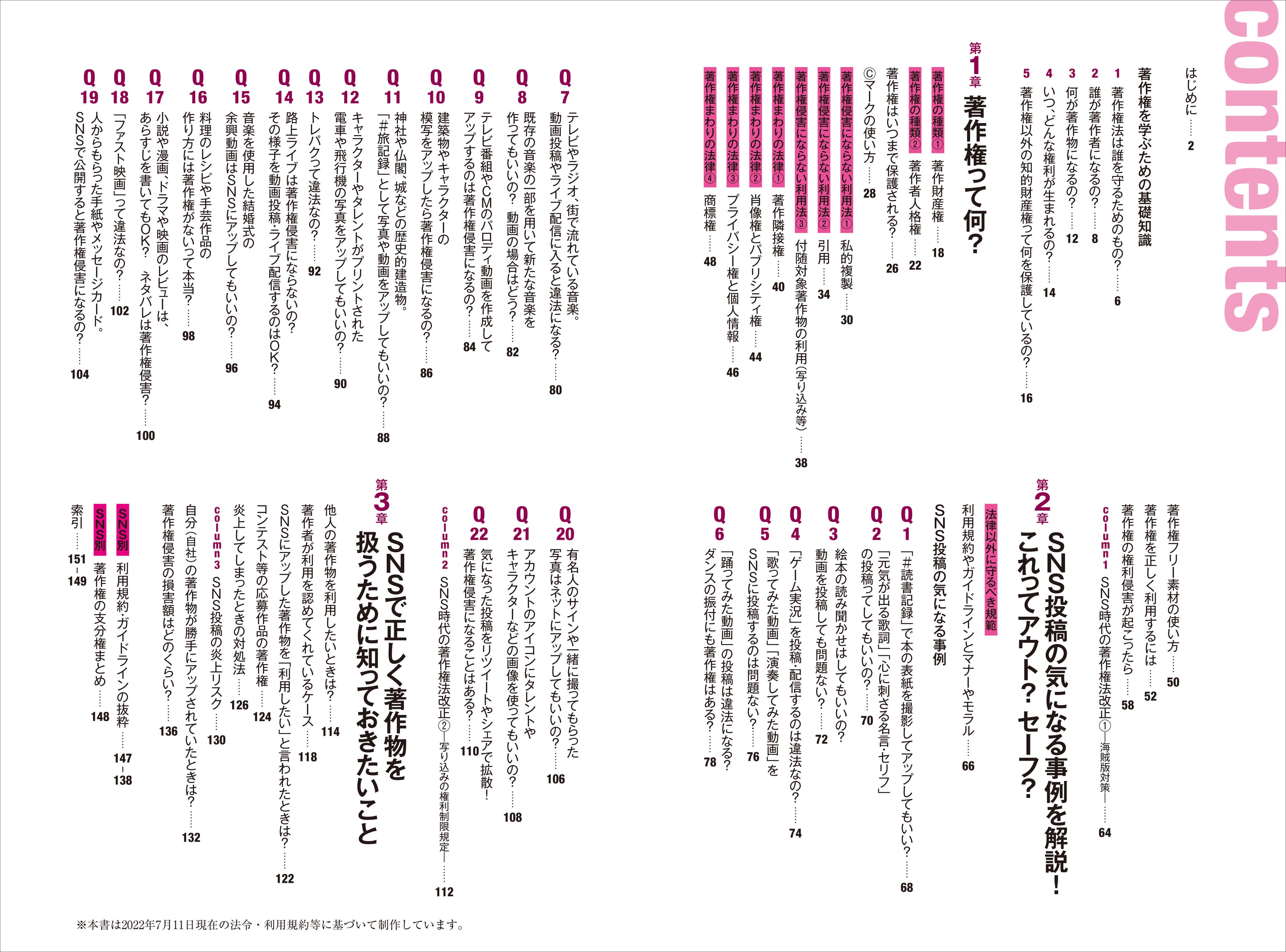 「アイコンにタレント使用OK?」「ネタバレは違法になる?」「ゲーム実況はグレー?」「歌ってみたがOKの理由は?」「建築物の写り込みは大丈夫?」など、誰もが気になる項目について、どのような法解釈によって判断されるのか詳しく深掘りしています。