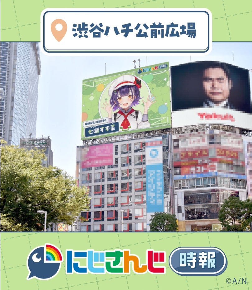 毎朝10時、渋谷ハチ公前の「シブハチヒットビジョン」には、にじさんじの朝の顔・七瀬すず菜が、爽やかな「おはよう」で1日の始まりを応援し、通勤・通学の人々を元気づけます。