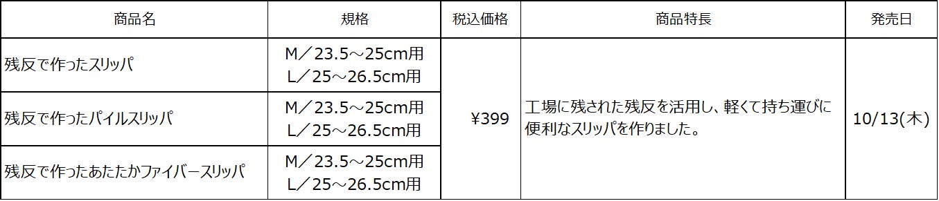 10/13(木) 無印良品 「残反で作ったスリッパ」シリーズ 限定発売のお知らせ