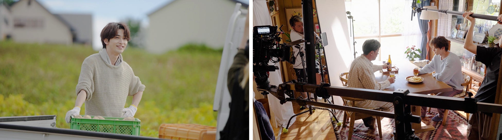 今回放映する新TVCMでは、「ピュアポテト」の商品名に合わせた「この男、ピュアにつき。」のフレーズを元に、横浜流星さん演じるまっすぐで不器用な青年が、地元を離れ、東京でサラリーマンとして働く中で生まれる葛藤や悩みを描きます。そして、じゃがいも農家を営む地元に戻り、変わらない故郷の風景や光石研さん演じる父親との会話、久しぶりに手伝う農作業、姪との再会から“誤魔化さなくていいか”を自分に問い続けます。横浜流星さん曰く、「ピュアポテトを擬人化したような物語」という本CMは、ピュアで芯がありながらも葛藤する青年の姿を「ピュアポテト」に重ね、素材本来が持つ美味しさに真摯に向き合う商品の特長を表現しています。
