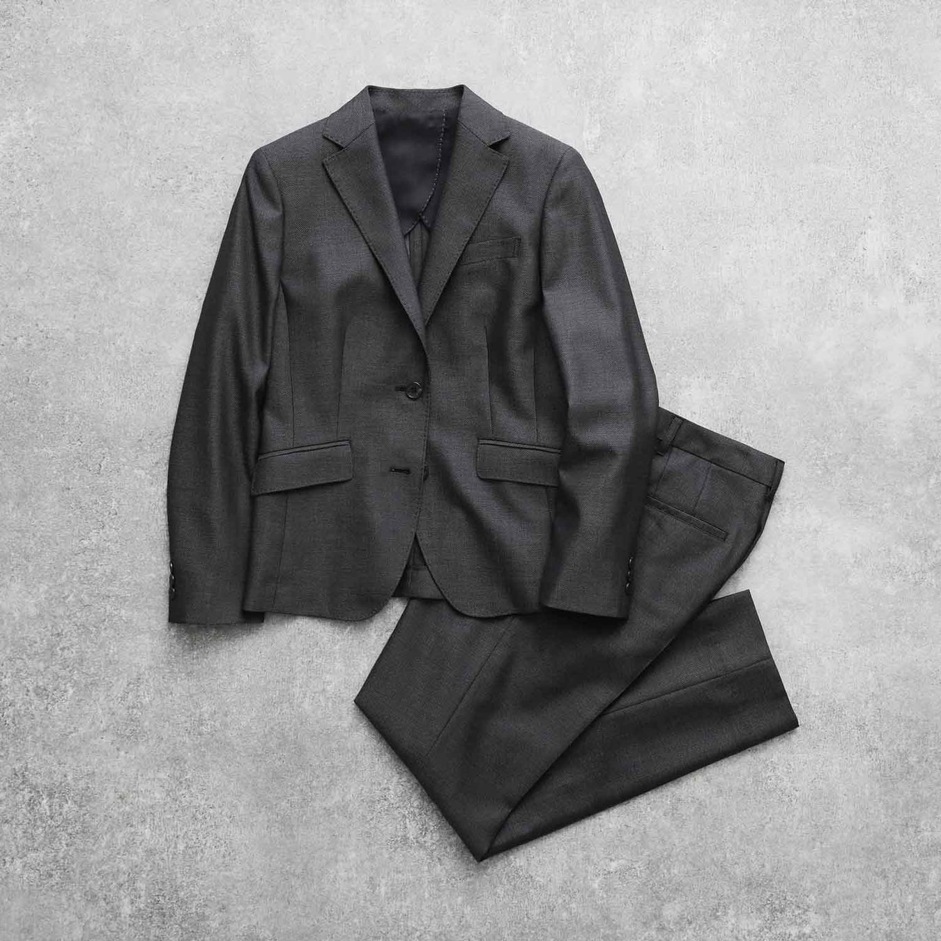 上質な素材感が洗練された着こなしに導くベーシックスーツ。セットアップで着用可能な同素材アイテムのバリエーションも魅力です。