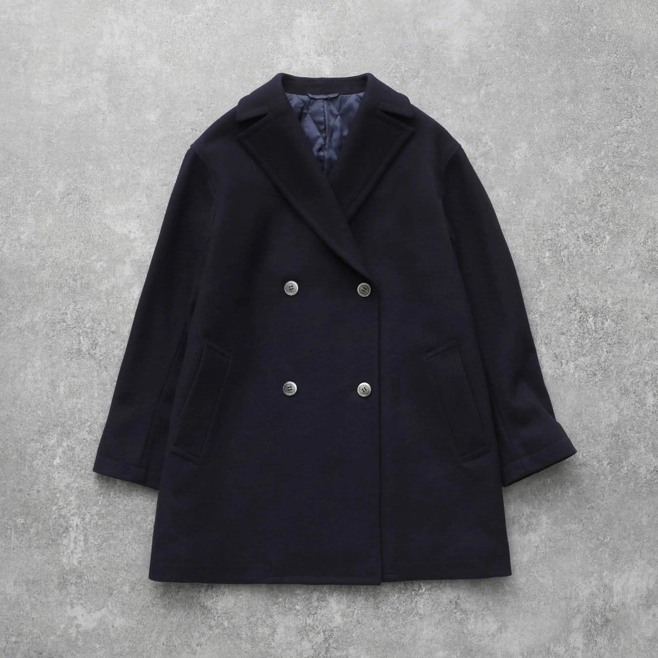 トラッドな本格仕様に捉われず、リラクシーなシルエットにすることで現代の日常使いに寄り添ったピーコート。リメイクによって生まれ変わった、ブランドオリジナルのメルトン生地を使用し、歴史と風格を感じる特別な1着に仕上がりました。