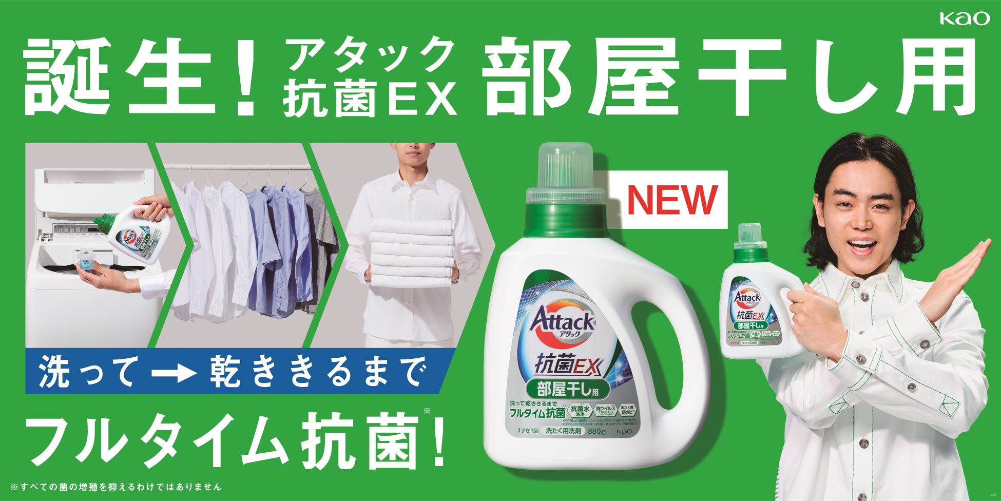 洗ってから乾ききるまでフルタイム抗菌※! 「アタック抗菌EX 部屋干し用」5月28日新発売