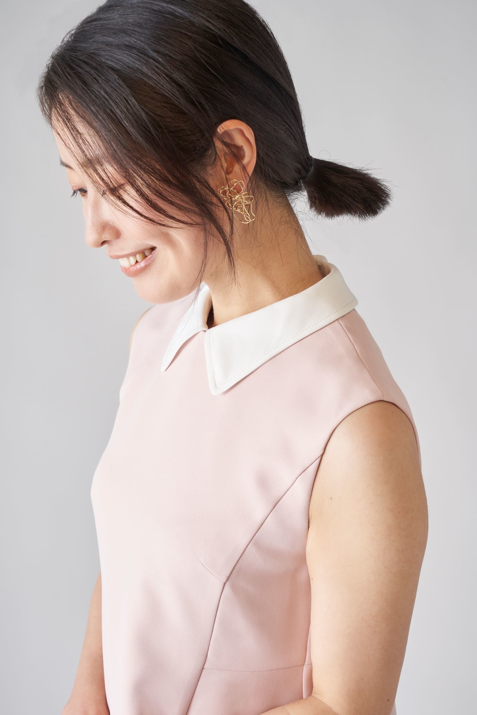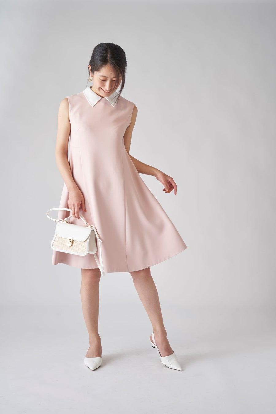 シワになりにくい素材で作ったワンピースに、取り外し可能な付け衿をセットにしました。