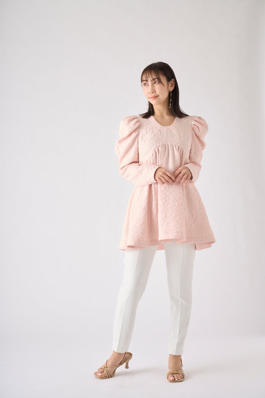 凹凸感のあるふくれジャカード素材を使用したチュニックブラウス。