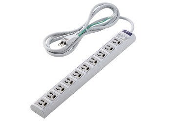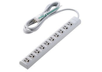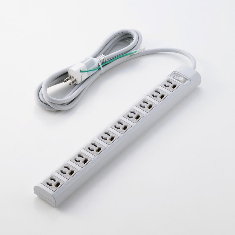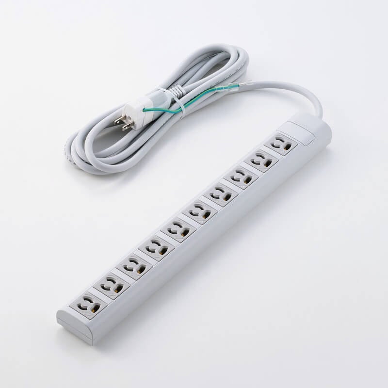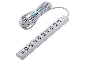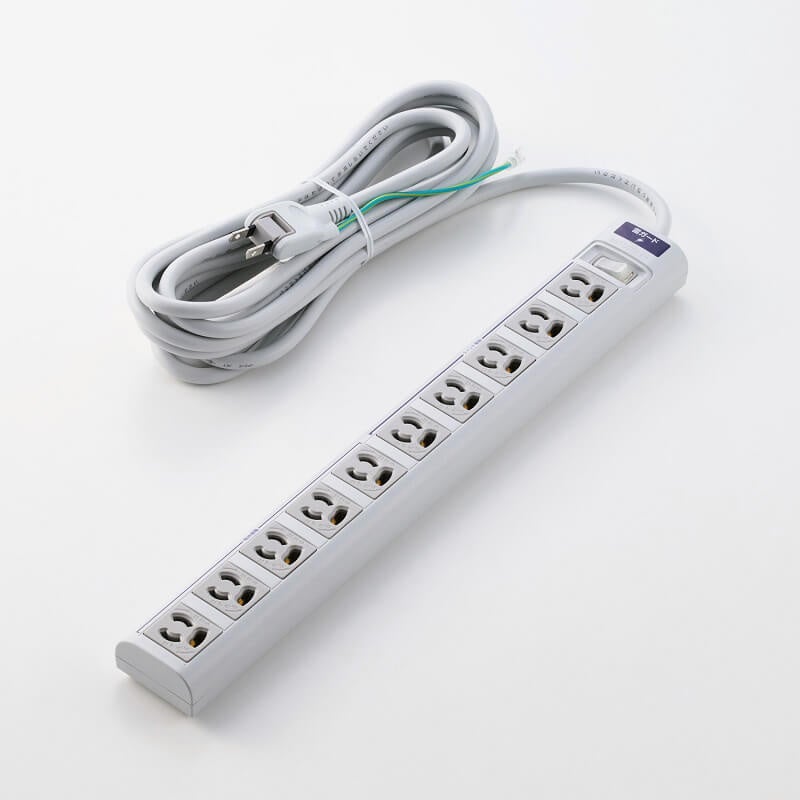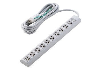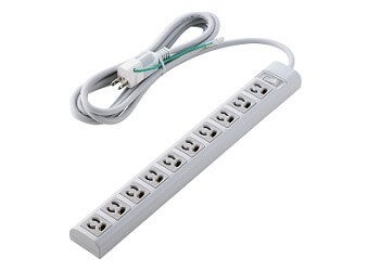 差込口が3ピン対応10口の電源タップです。プラグは3ピン/2ピンの2タイプで、さらに機能の違いにより全5モデルをラインアップ。各モデルはコード長を2種類ご用意しています。