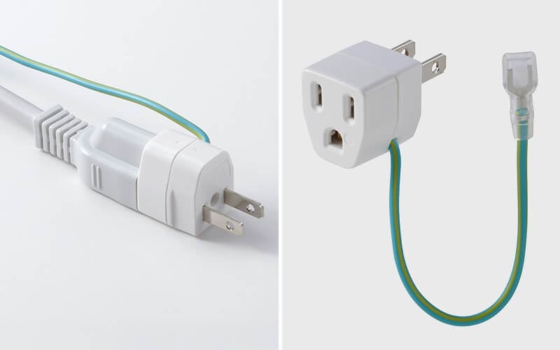 3ピンプラグを2ピンプラグ(アース線付き)に変換できるアダプターが付属しています。