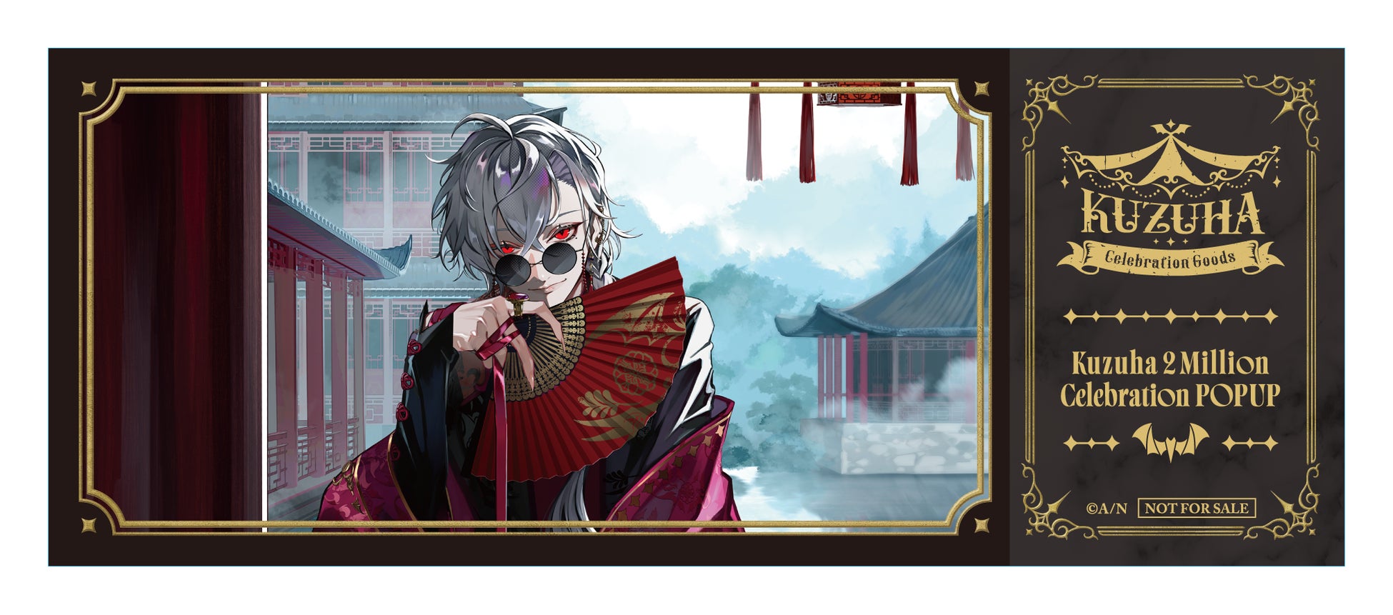 「Kuzuha 2 Million Celebration POPUP」で販売されているグッズをご購入3,000円(税込)毎に、会場限定ノベルティ「チケット風カード(全6種)」から1枚ランダムでプレゼントいたします。