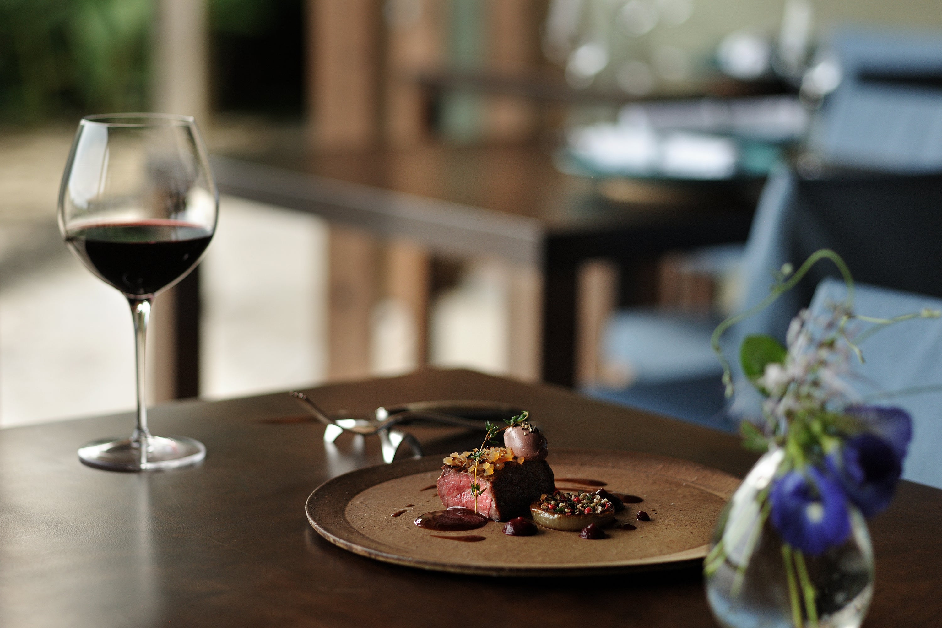 ■肉料理「牛肉の炭火焼 ジージキのローストとレバームース」