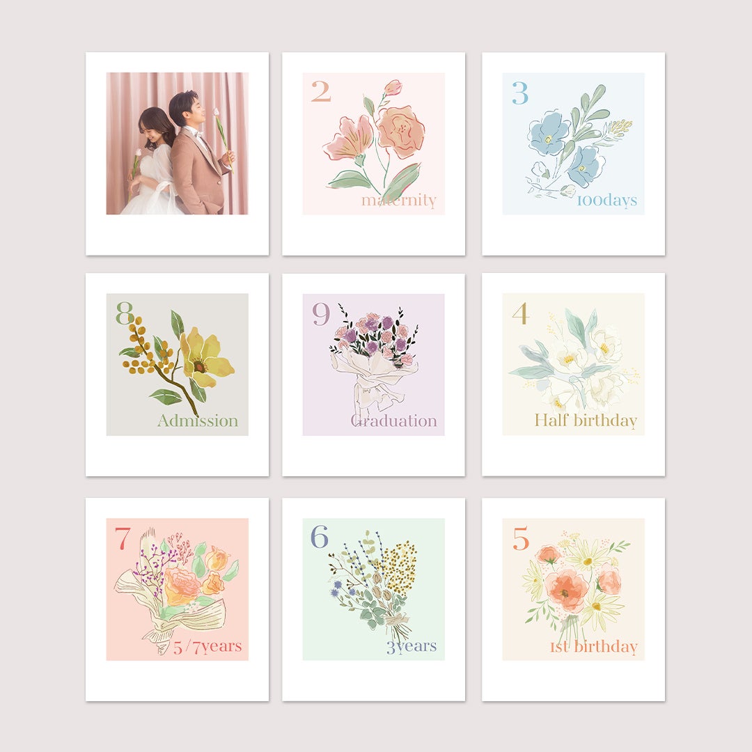 このボードは、一度お渡しして終わりではありません。ボードには専用の写真パネルが付属しており、次回の撮影(ハーフバースデーや1歳記念など)の際に該当のパネルをお持ちいただければ、新しいお写真を無料でセットしてプレゼントいたします。人生の瞬間を重ねるたびにボードが埋まっていく、まさに『生涯のフォトパートナー』としてのお約束です。