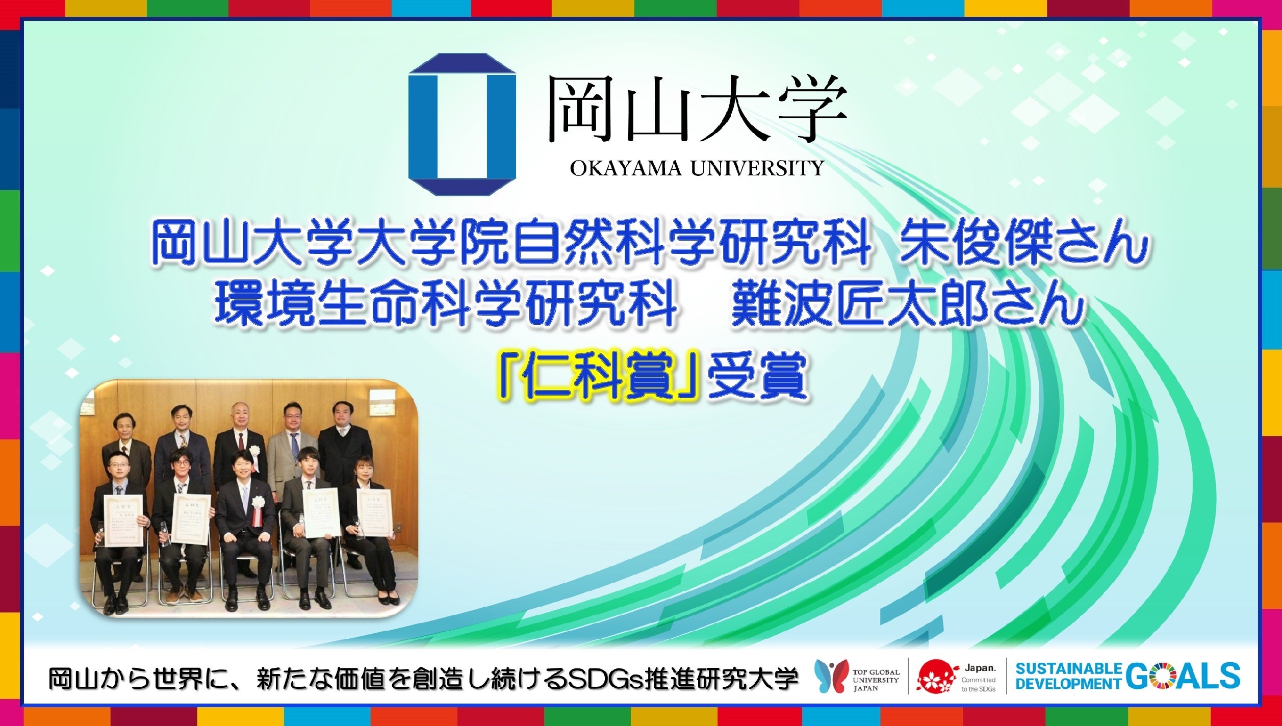 【岡山大学】大学院自然科学研究科の朱俊傑さんと環境生命科学研究科の難波匠太郎さんが「仁科賞」を受賞