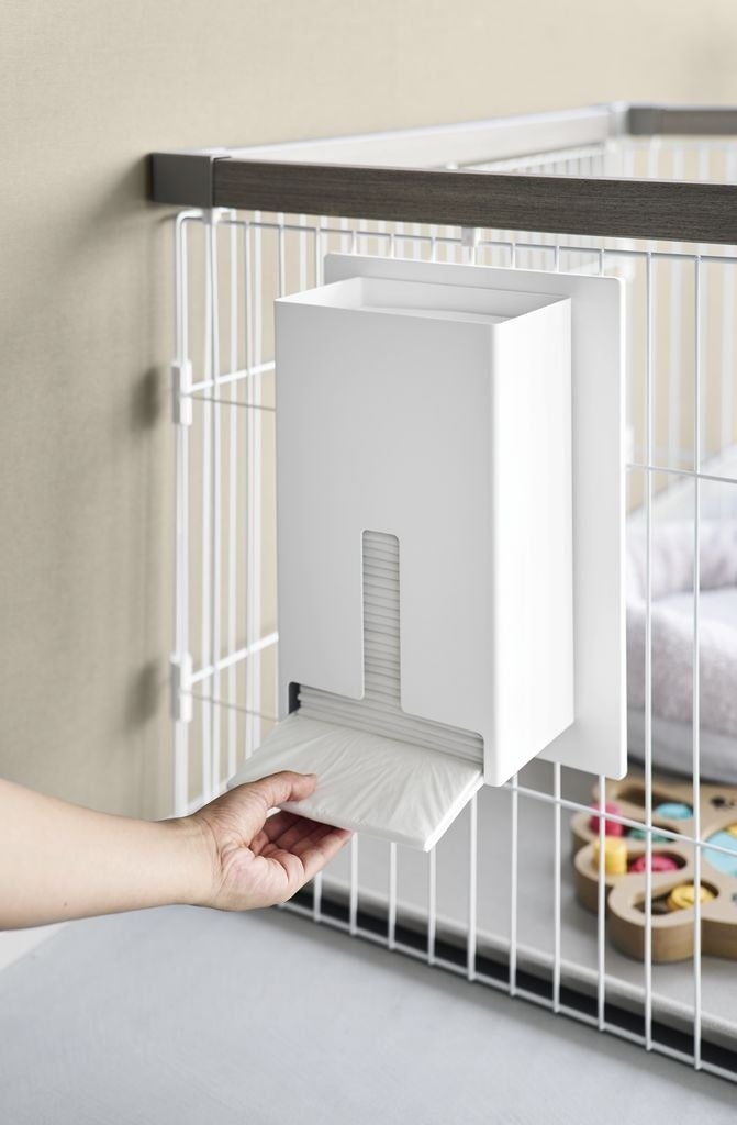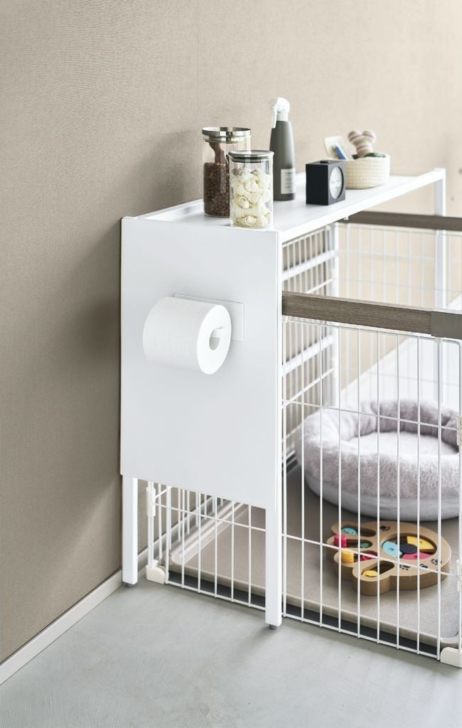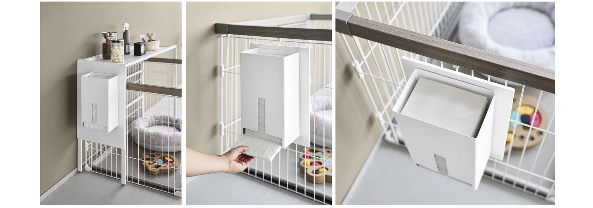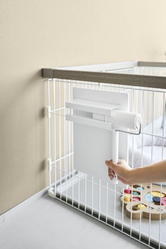 「ケージ上収納ラック」に別売のスチールプレートを取り付けることで、マグネット付きの収納シリーズを組み合わせることができます。トイレットペーパーやトイレシーツなどのトイレ用品やクリーナーなどケージ周りの必需品を便利に収納できます。