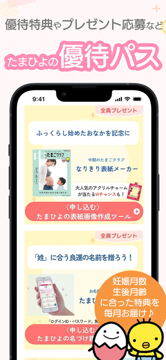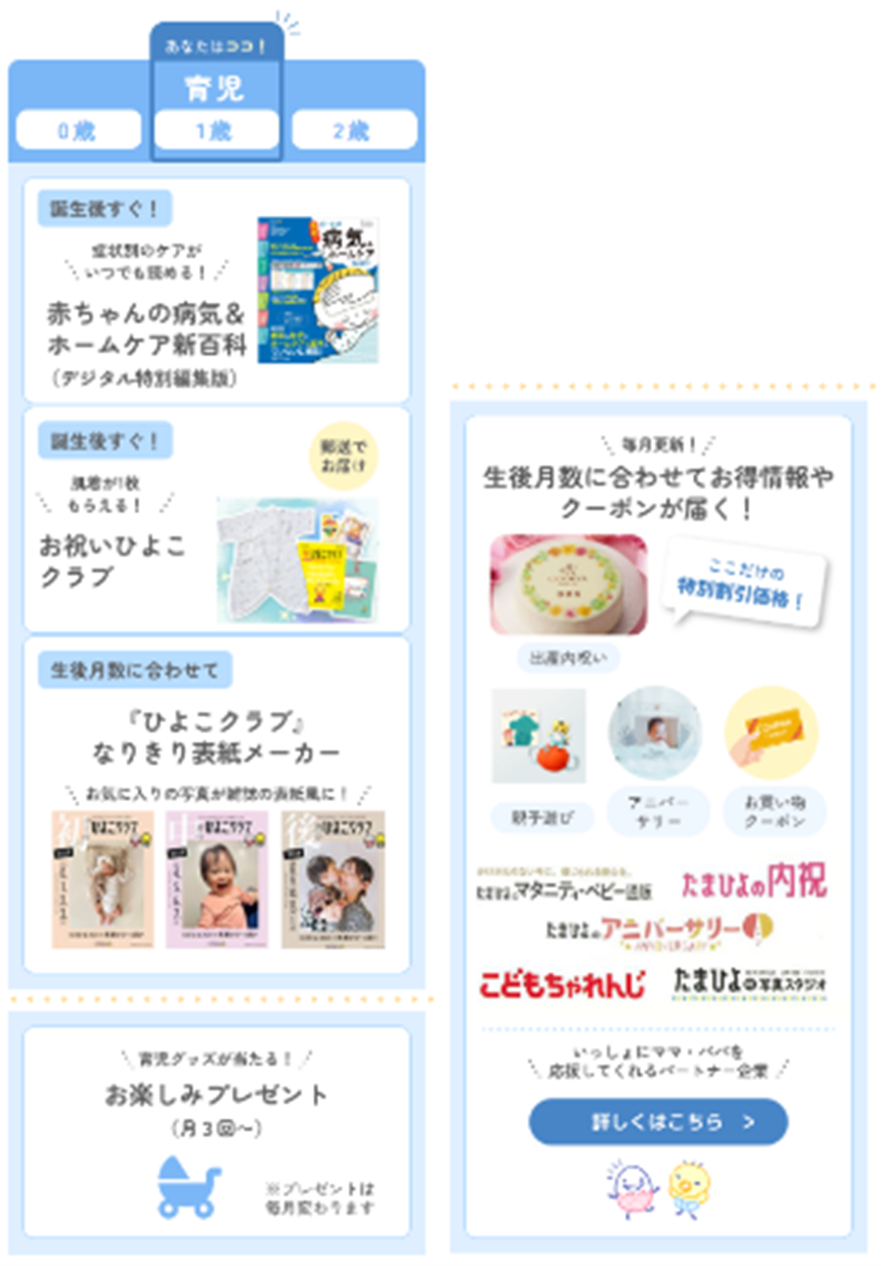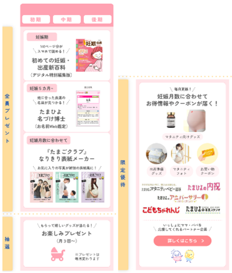 「毎月届く、たまひよ限定のステキな優待でママ・パパを応援します」