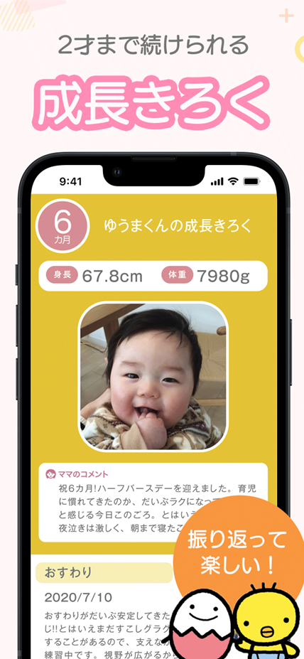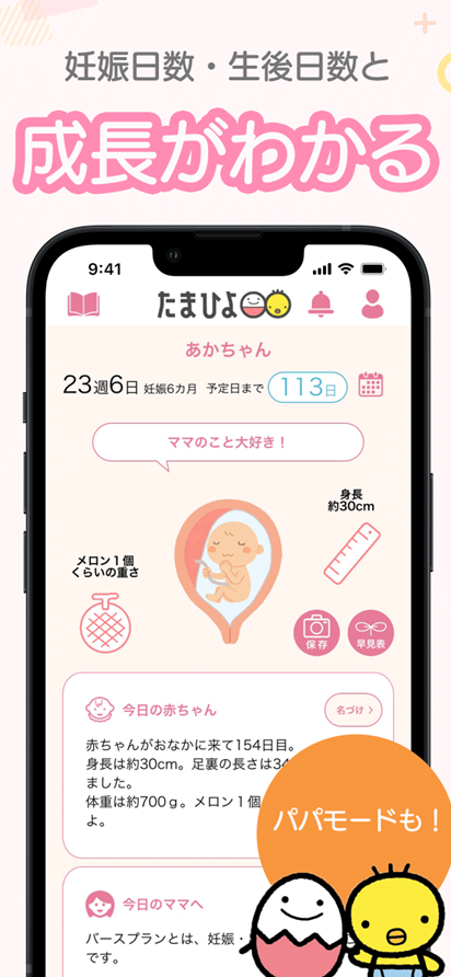妊娠・生後日数に合わせて医師や専門家監修のメッセージが毎日配信されるほか、同じ状況のかたとおしゃべりできるルーム機能も搭載。赤ちゃんとママの体調管理やスケジュール管理にもピッタリのアプリです。
