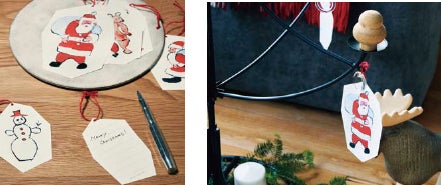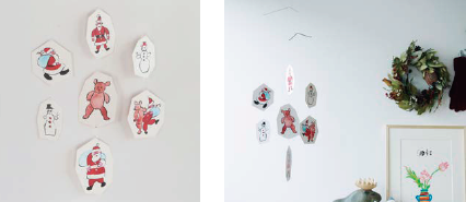 モビールと同じく、柚木氏が今回描き下ろしたサンタクロースや雪だるまなどのアートワークをプリントしたオーナメント。クリスマスツリーに飾ったり、裏にはメッセージが書けるようになっているので、ギフトに添えて贈るのもおすすめです。