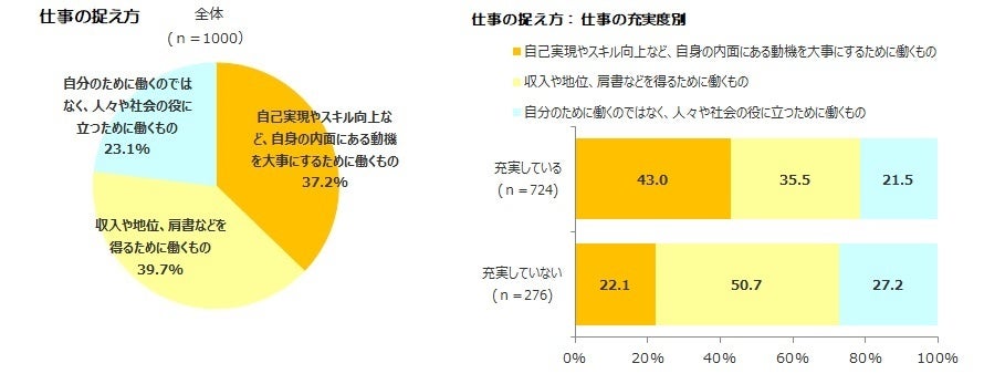 仕事が「充実している」人は「内因的仕事観」が最も多く43.0%