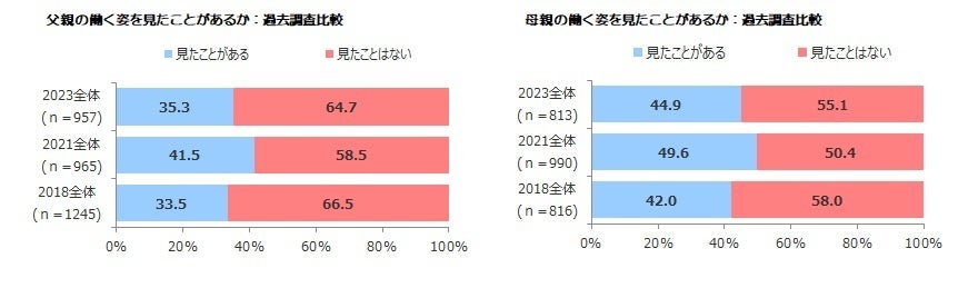 父親の働く姿を「見たことがある」35.3%、働く母親の姿を「見たことがある」44.9%