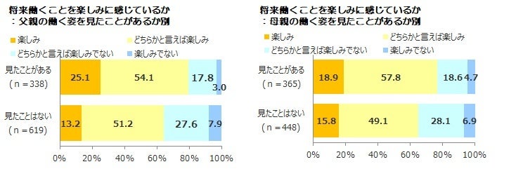 親の働く姿を「見たことがある」子供の方が将来働くことを楽しみに感じる傾向