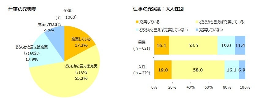 7割以上が「仕事が充実している(どちらかと言えば含む)」と回答