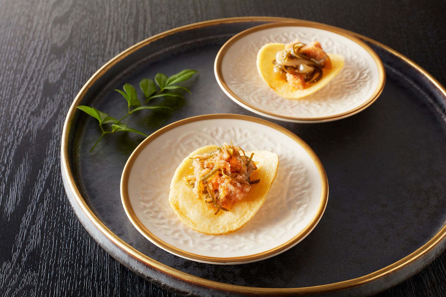 北海道で育てた、淡い色の果肉が美しいじゃがいもであり、口当たりの良い食感で、ふわり豊かに広がる旨みが特徴。久原本家 北海道が手掛ける珍味を引き立たせるため、贅沢な厚さにスライスした生じゃがいもを香り豊かに揚げました。