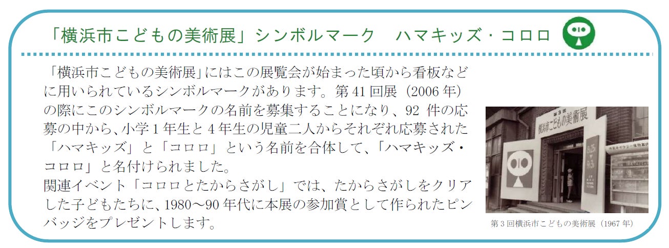 ●エントランスホールに開設された「いりぐちギャラリー vol. 5」では、「横浜市こどもの美術展」歴代関連イベントの特集展示をおこなっております(8月17日まで)。あわせてぜひご覧ください。