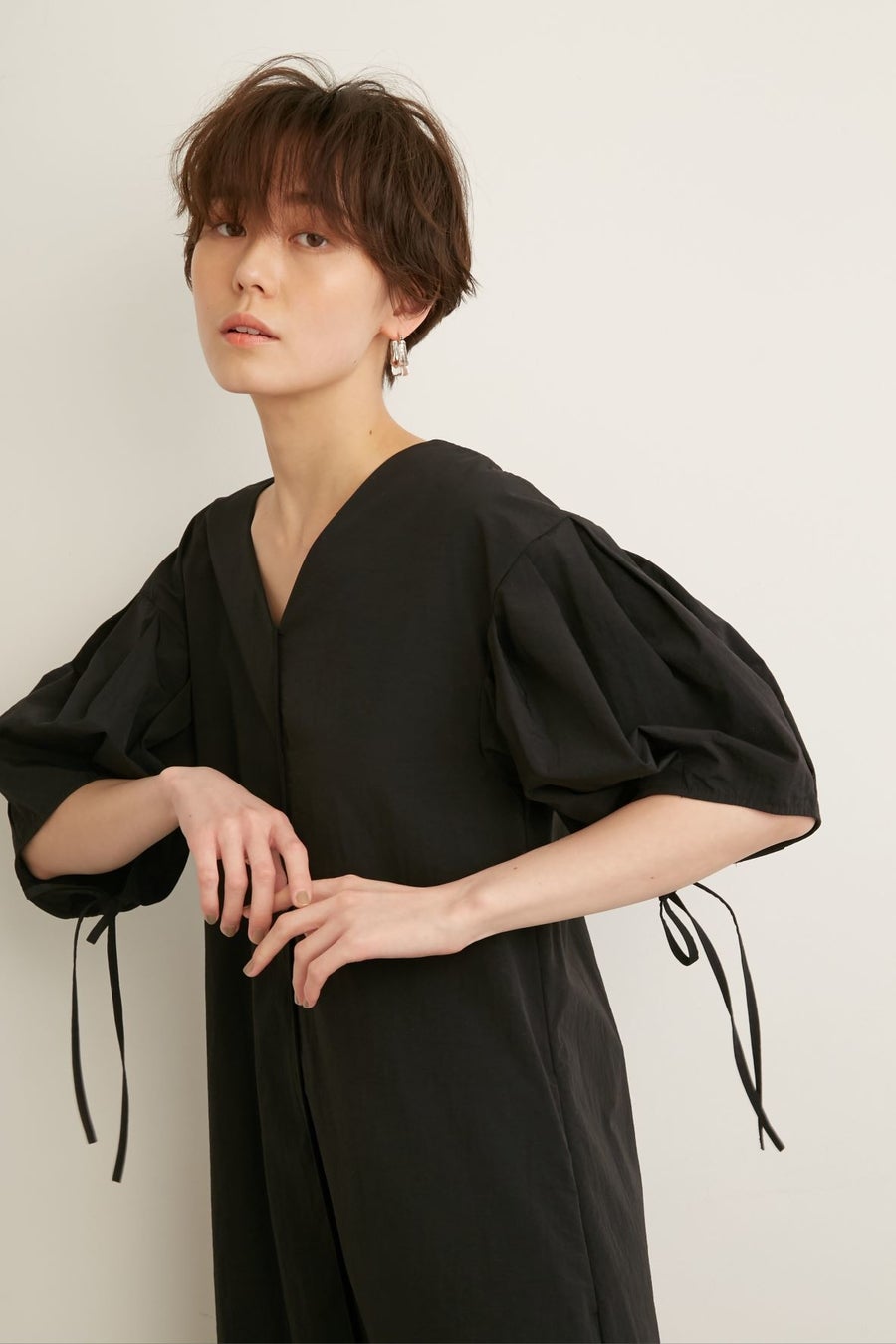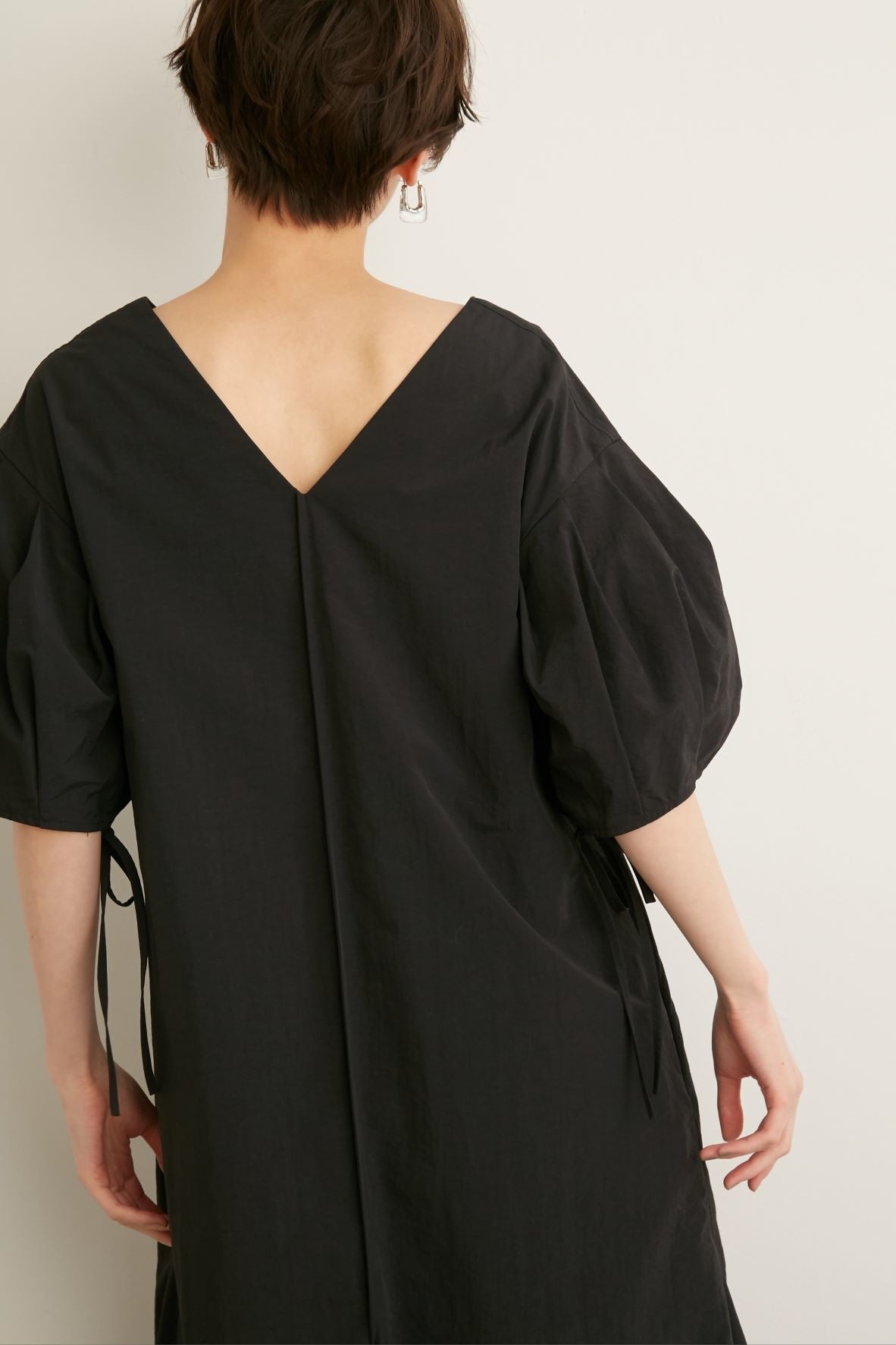 袖下の紐を絞ると袖にもボリューム感が出て気分を変えたいときにおすすめ。
