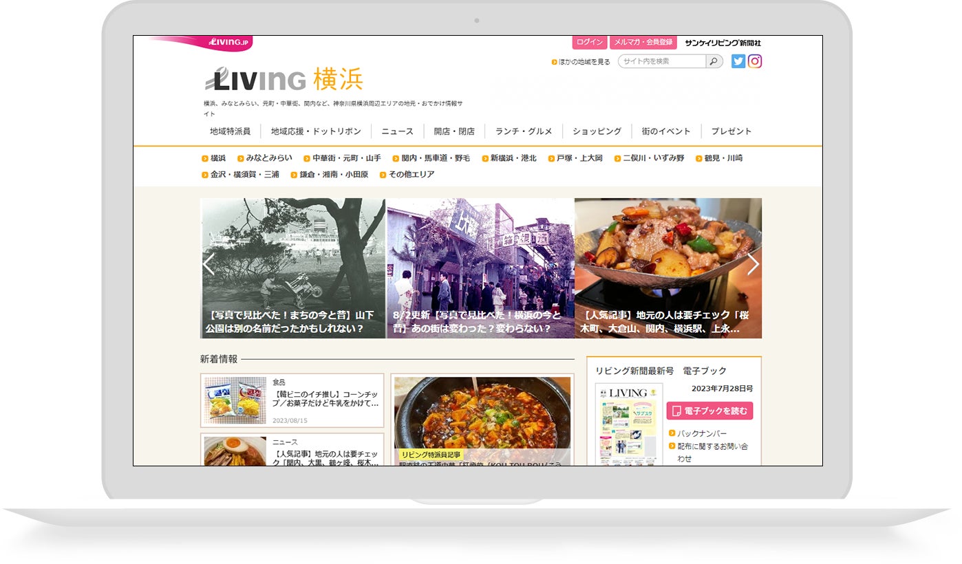 このリビング新聞の公式サイトとして、各リビングWebの地域版も運営されています。各地域版では、リビング新聞の掲載記事(電子版)だけでなく、外部協力する「リビングメイト」や「地域特派員」が各地で体験した地元密着の記事・情報も日々発信しています。