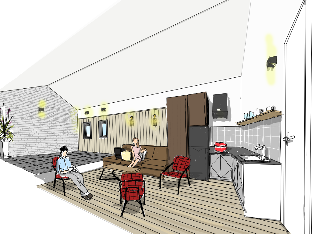 また、木のぬくもりを感じられる「Fire Base・KAMADO」は、デッキのファイヤーピットに加えて本格ピザなどが調理可能な石窯を兼ね備えた、アウトドアクッキング好きにはたまらないトレーラーコテージです。室内はロフト付の仕様で、お子さまはもちろん大人も思わず童心に帰ってしまうような遊び心溢れる空間となっております。
