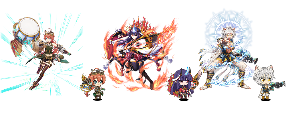 左からエイン【匠の吟遊詩人】、ラーシャ【鬼神の吟遊詩人】、クゥ【柔靭の吟遊詩人】