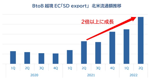 新型コロナウイルスの影響が長引き訪日が難しい現状で、日本の商品を仕入れるために越境ECを利用する海外バイヤーは増えています。「SD export」においても、越境EC事業全体の流通額は前年同期比で1.5倍(*1)と伸びており、特に北米は前年同期比2倍以上(*1)に成長している注目の市場です。