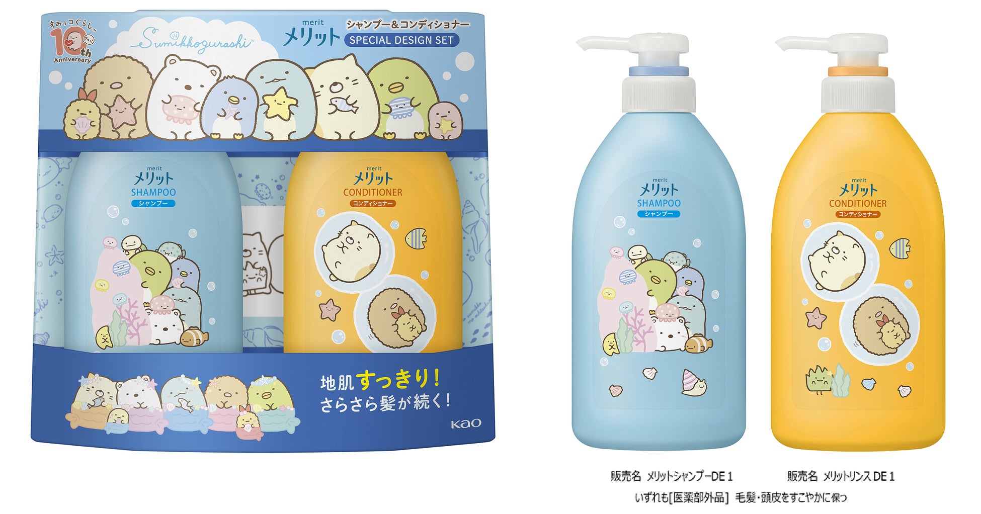「メリット」は、家族みんなの地肌を清潔に気持ちよく洗い上げることで、みんなが心地よく笑顔で過ごせることを大切にしています。この夏は、思わず手に取ってみたくなる「すみっコぐらし」のスペシャルデザインボトルで、かわいいすみっコたちとの楽しいお風呂タイムをお届けします。