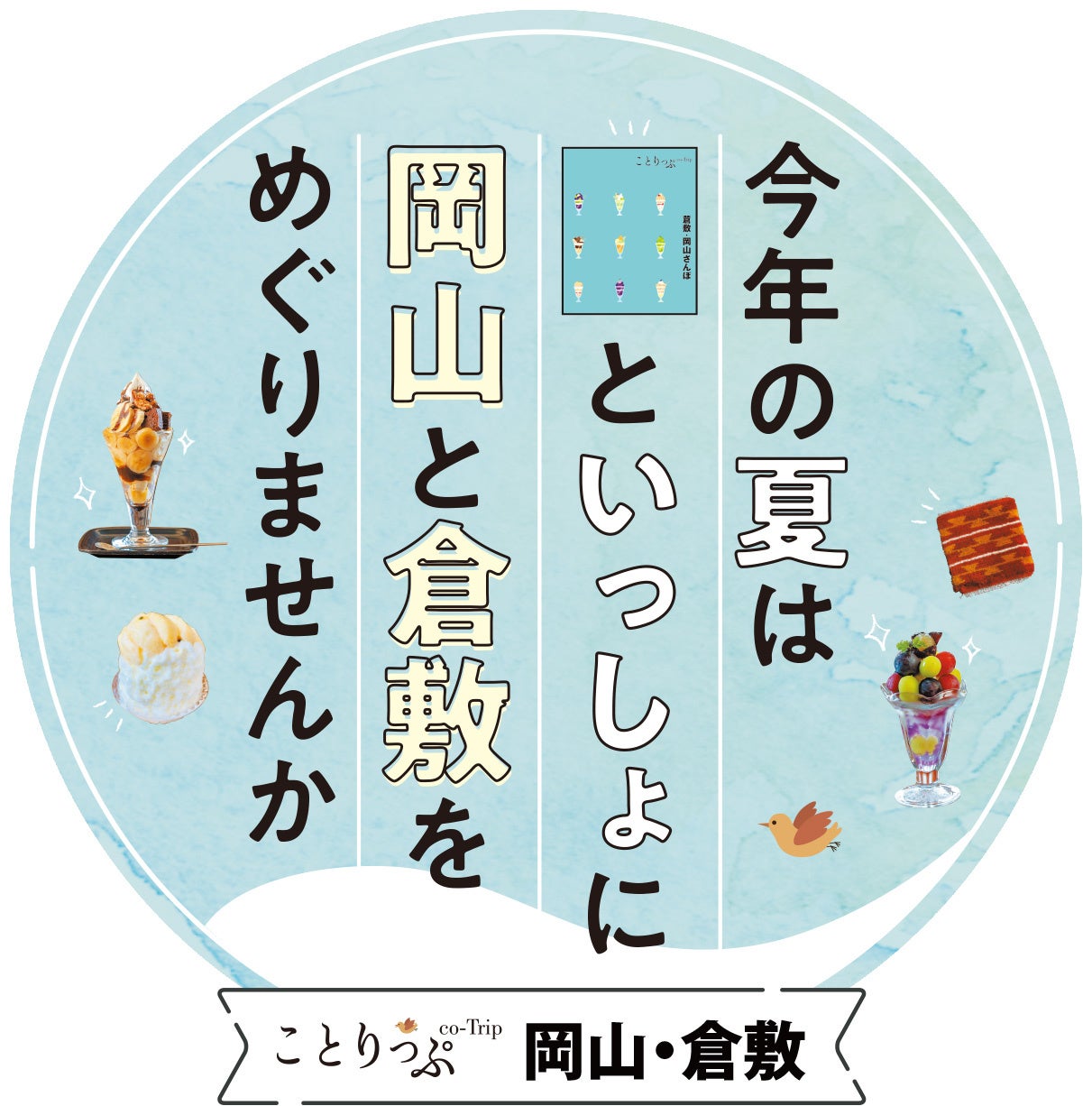 今年の夏は岡山・倉敷へ。岡山・倉敷を巡る『ことりっぷ』おすすめモデルプランをご紹介しながら、小冊子『ことりっぷ 倉敷・岡山さんぽ』をはじめ、旅の準備にうれしい観光パンフレットや書籍をお楽しみいただけます。『ことりっぷ』がおすすめする岡山・倉敷のご当地商品も特別販売。同期間にデジタルスタンプラリーが実施される、岡山・倉敷の魅力をお届けします。